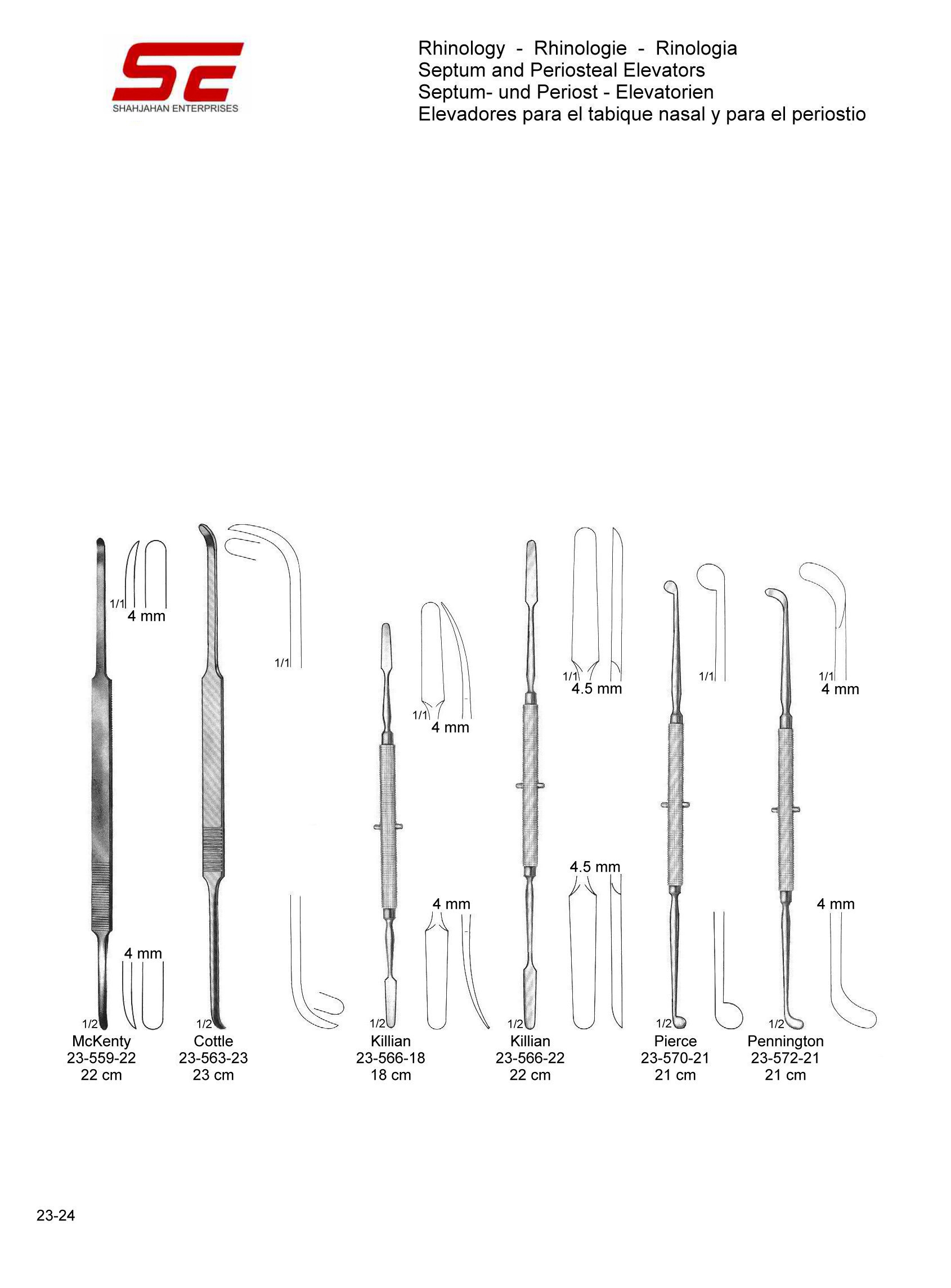Killian Septum Periosteal Elevator Str 22.0cm 4.5x4.5mm |
