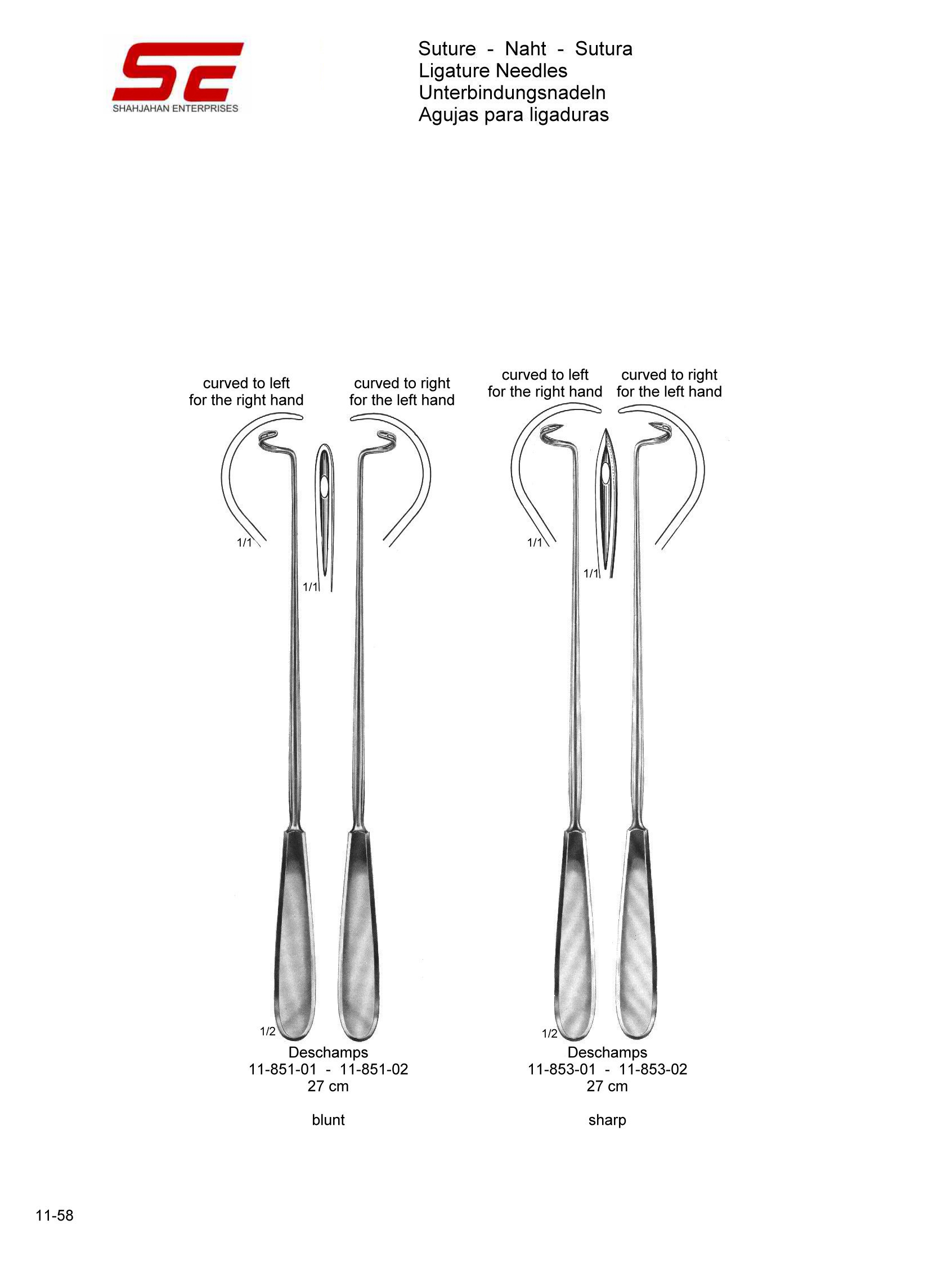 Deschamps Ligature Needle Sharp Curved to right for the left hand 27.0cm