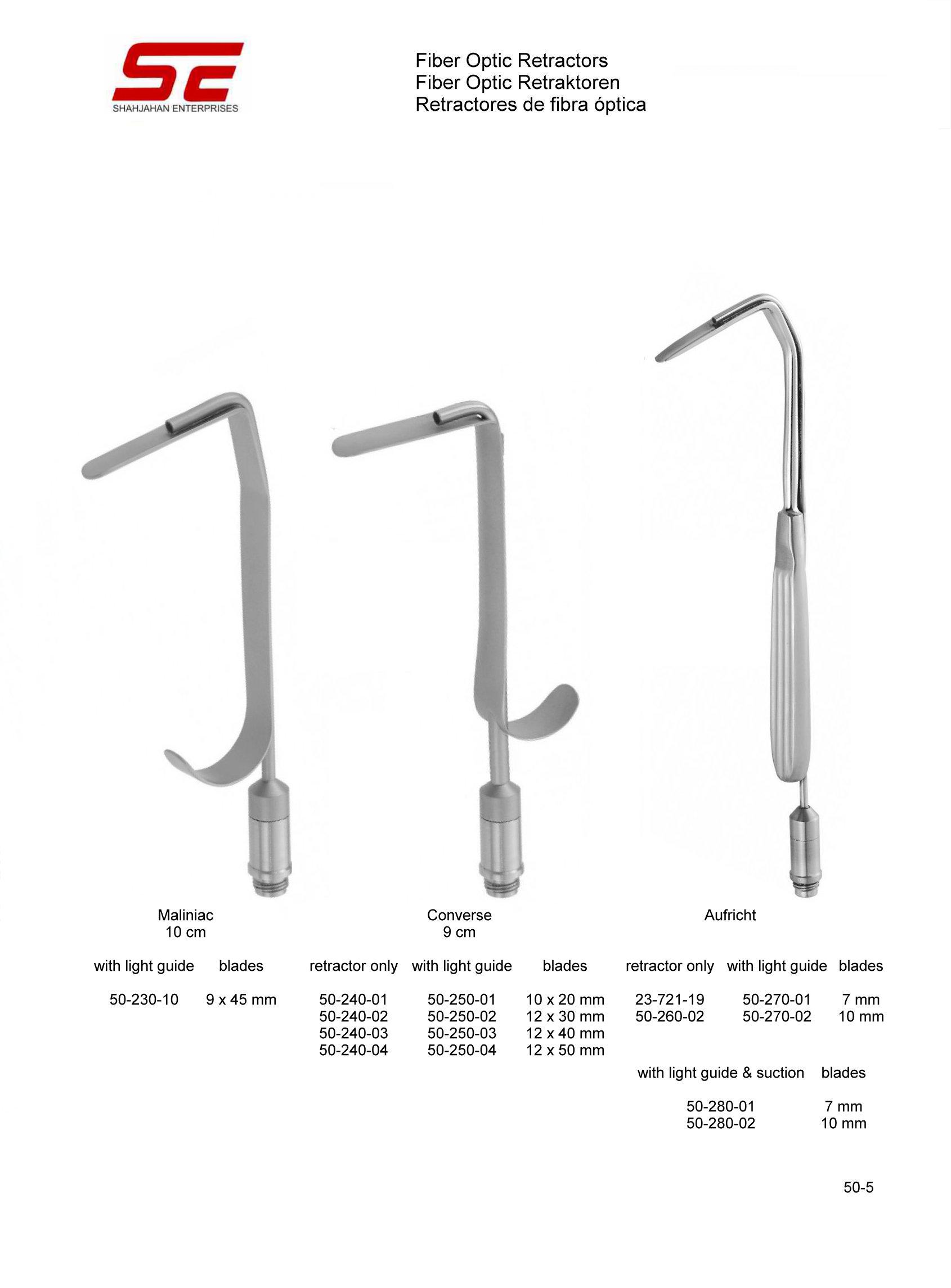 Aufricht Fiber Optic Retractors With Light Guide Blades 10mm |