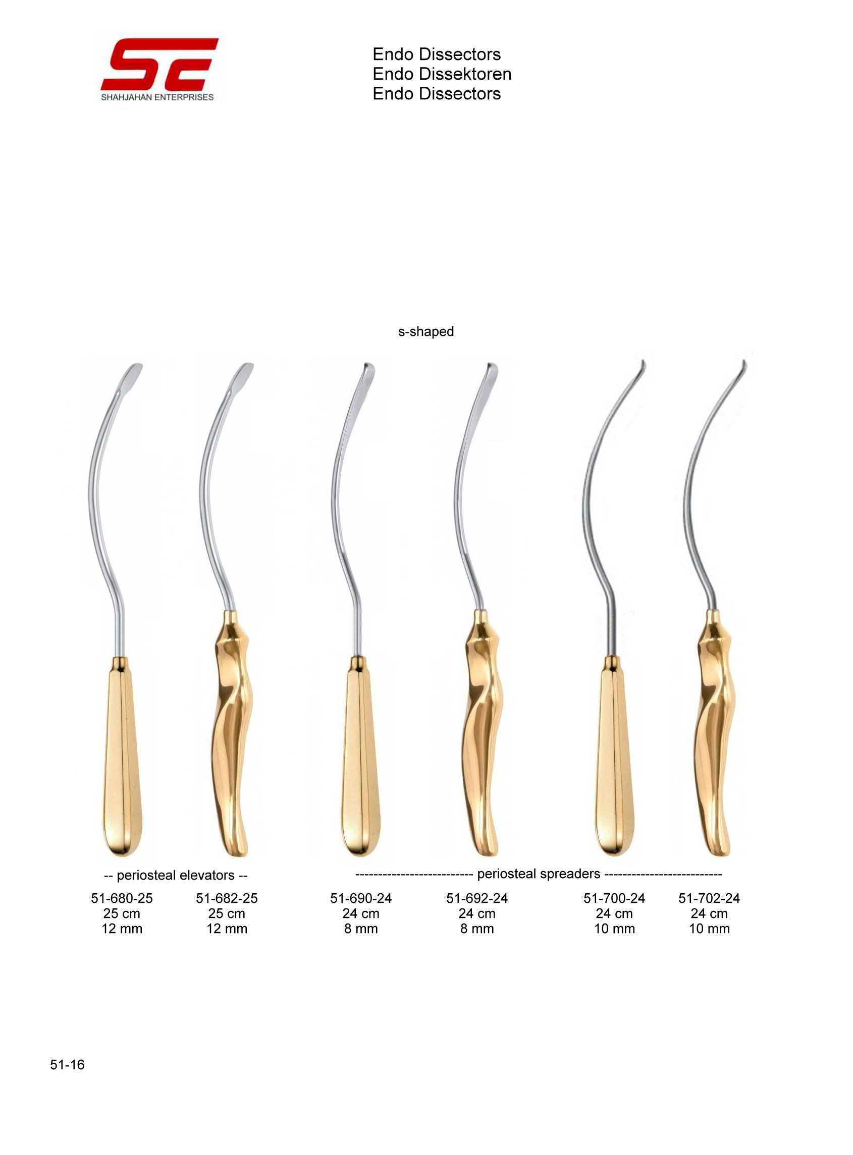 Endo Dissectors Periosteal Spreaders S-Shaped 10mm 24cm Normal Handle |