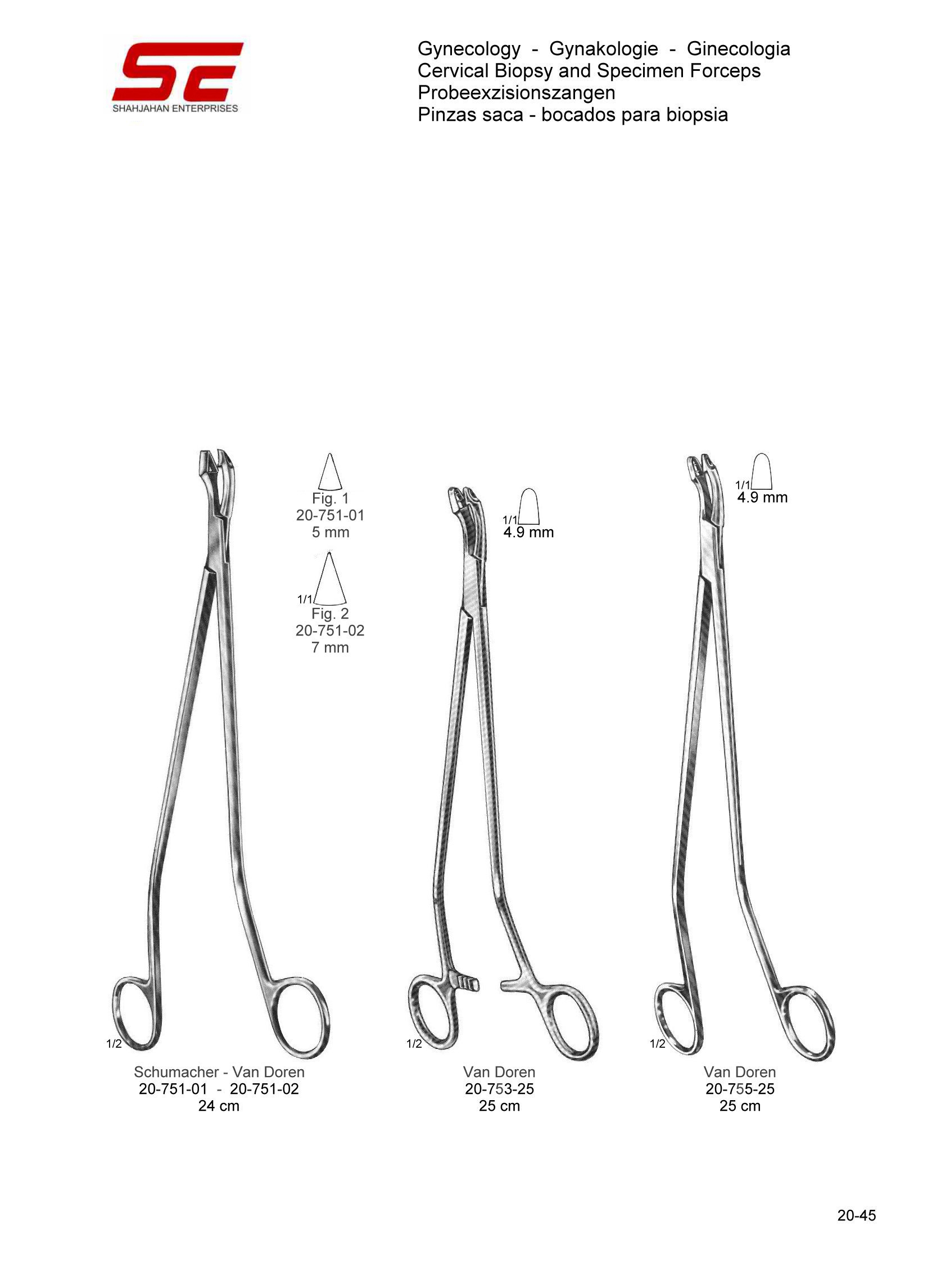 Van Doren Cervical Biopsy and Specimen Forcep 25.0cm 4.9mm With Out Ratchet |
