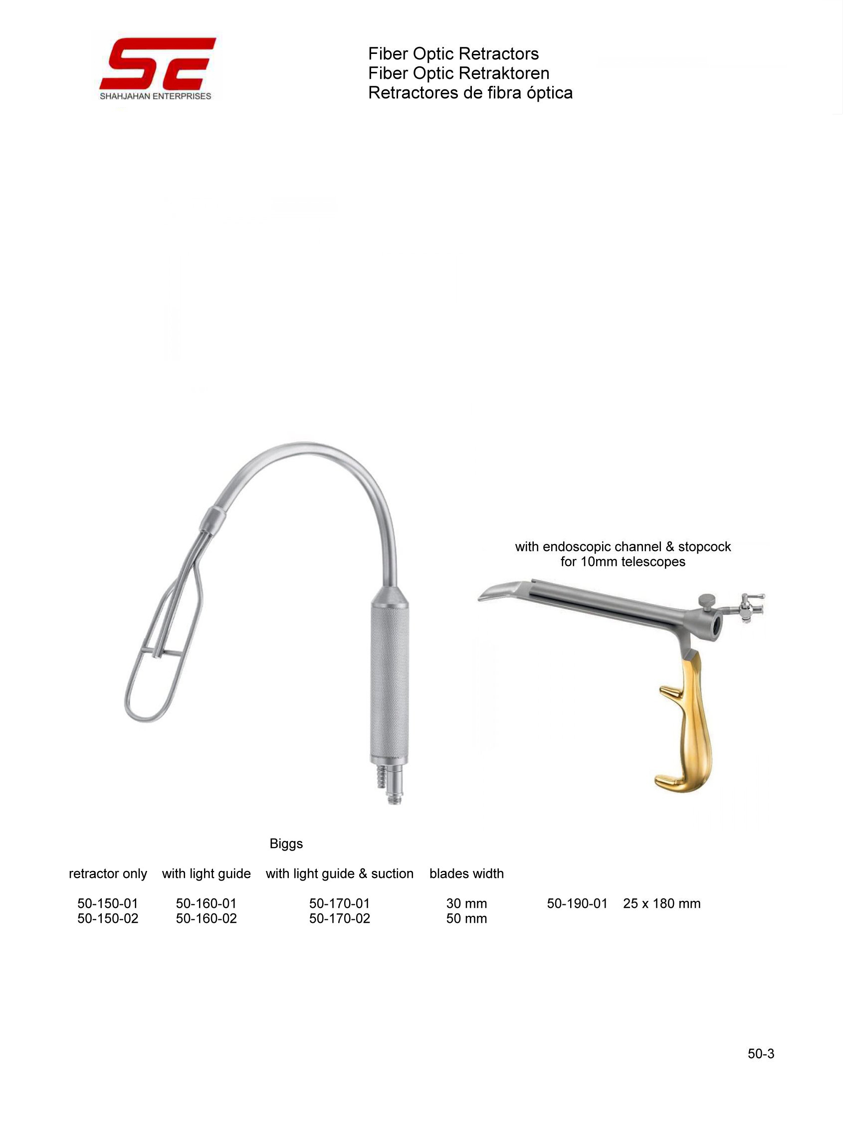 Biggs Fiber Optic Retractor With Light Guide & Suction Blades Width 50mm |