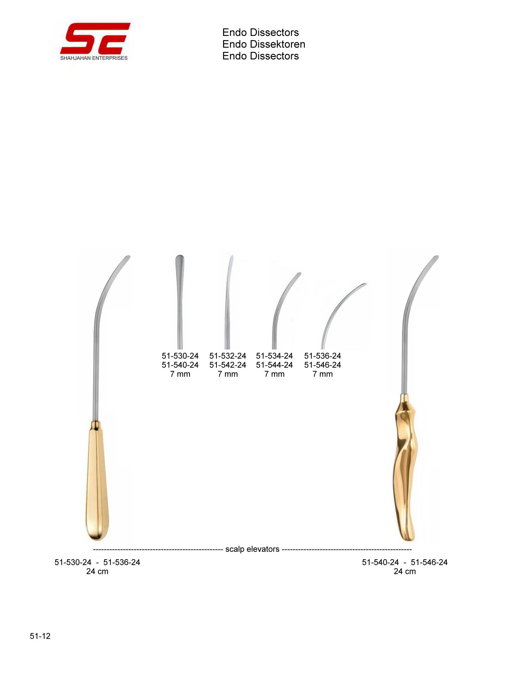 Endo Dissectors Scalp Elevators 7mm 24cm Curve Ergo Handle |