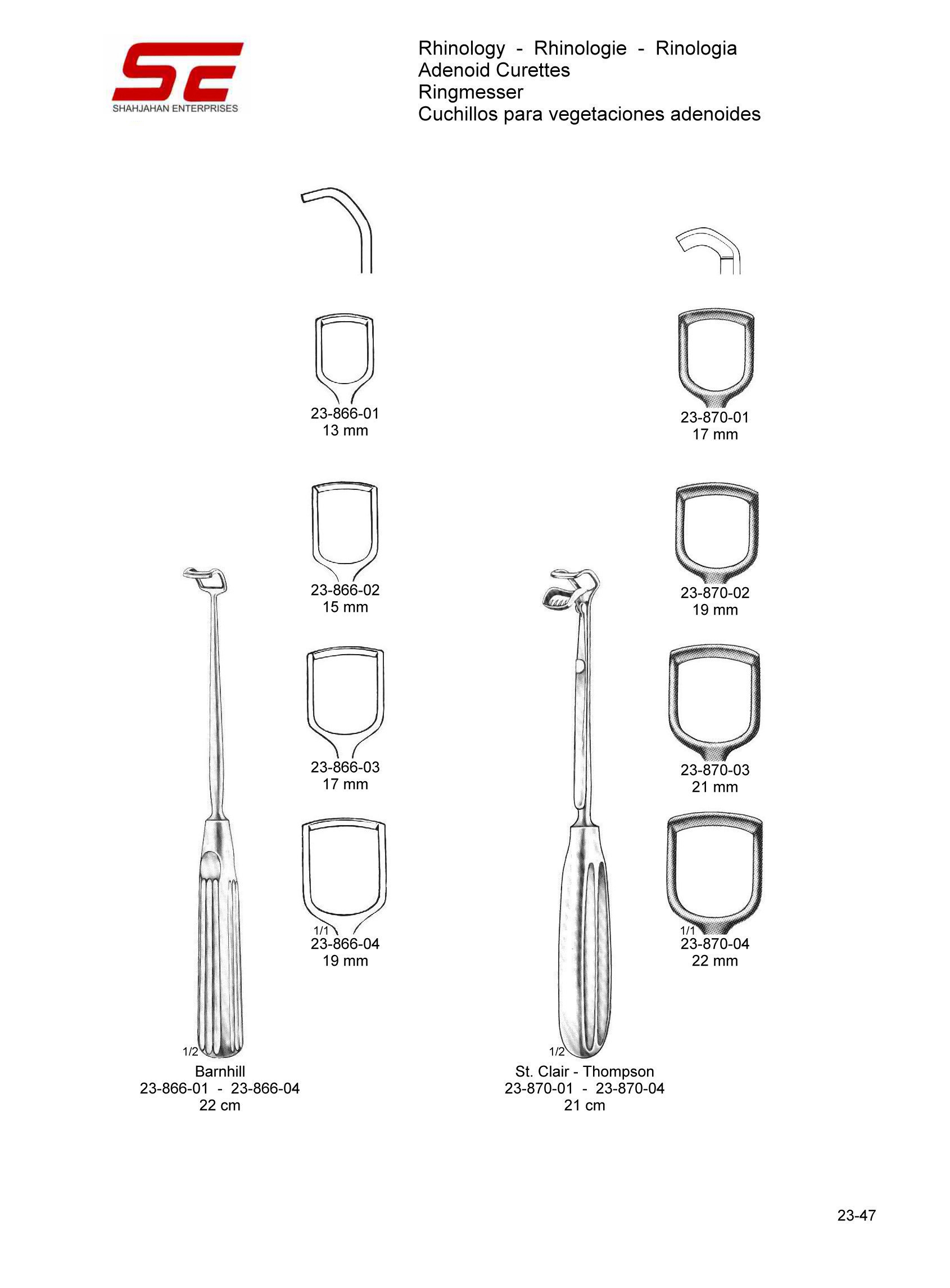 St. Clair – Thompson Adenoid Curette Str 21.0cm,22.0mm |
