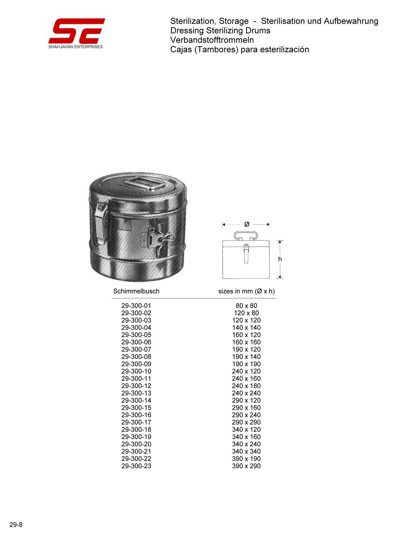 29-300-16 Schimmelbusch Dressing Sterilizing Drum (Ø x h) 290 x 240mm