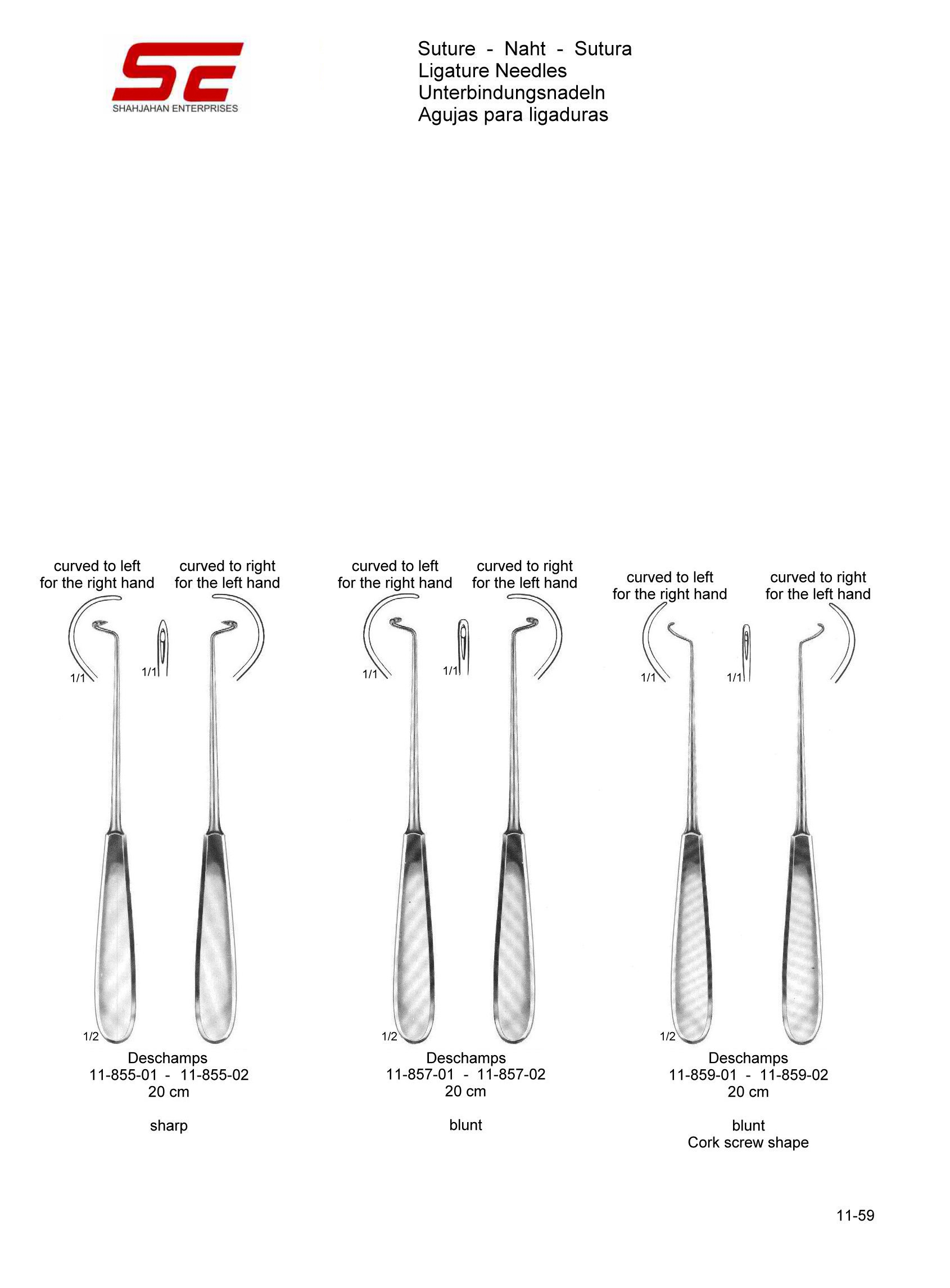 Deschamps Ligature Needle Blunt Cork screw shape Curved to right 20.0cm |